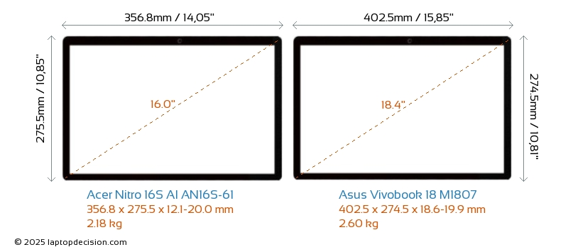 SD Card Reader Nitro 16S AI AN16S-61 is equipped with an SD Card Reader for easy access to memory cards. Vivobook 18 M1807 does not have an SD Card Reader.
