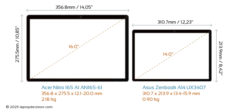 HDMIBoth Nitro 16S AI AN16S-61 and Zenbook A14 UX3407 feature an HDMI port (1x HDMI 2.1) for connecting to external monitors.