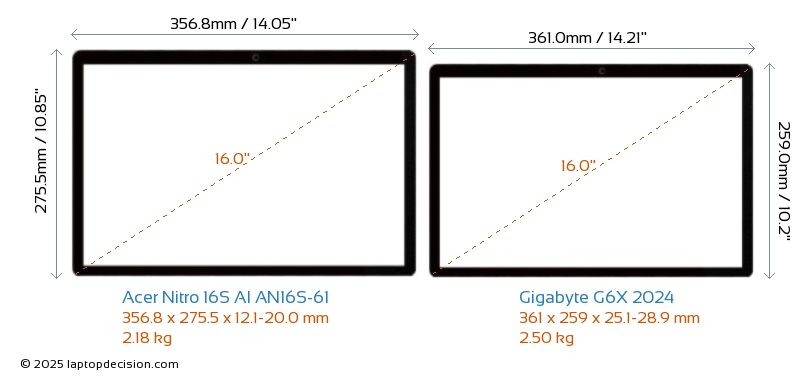 HDMIBoth Nitro 16S AI AN16S-61 and G6X 2024 feature an HDMI port (1x HDMI 2.1) for connecting to external monitors.