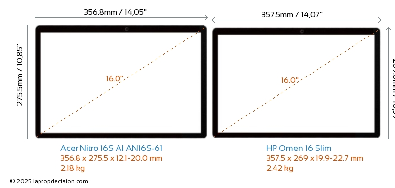 HDMIBoth Nitro 16S AI AN16S-61 and Omen 16 Slim feature an HDMI port (1x HDMI 2.1) for connecting to external monitors.