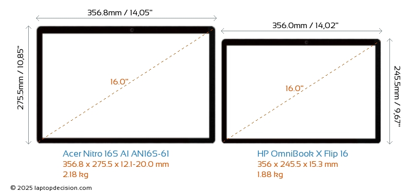 Wifi OmniBook X Flip 16 features a more advanced Wi-Fi standard v7, providing faster and more reliable wireless connections compared to Nitro 16S AI AN16S-61 (v6E).