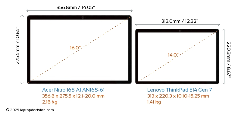 Audio JackBoth Nitro 16S AI AN16S-61 and ThinkPad E14 Gen 7 are equipped with a 3.5mm Audio Jack, providing seamless connection to headphones and speakers.