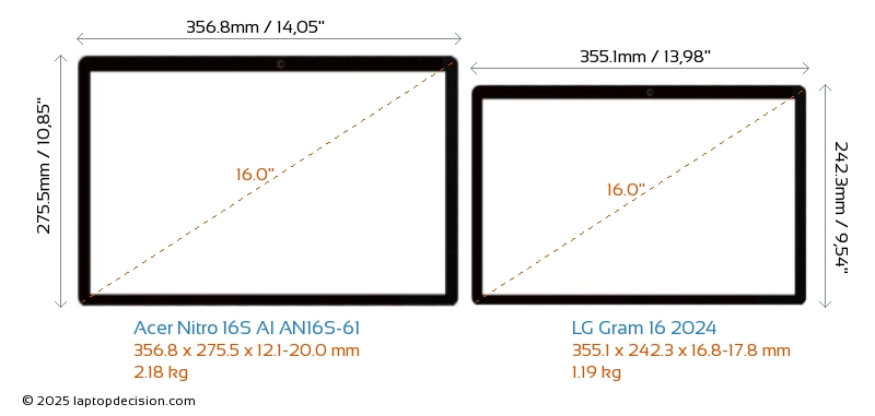 HDMIBoth Nitro 16S AI AN16S-61 and Gram 16 2024 feature an HDMI port (1x HDMI 2.1) for connecting to external monitors.