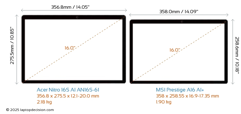 HDMIBoth Nitro 16S AI AN16S-61 and Prestige A16 AI+ feature an HDMI port (1x HDMI 2.1) for connecting to external monitors.