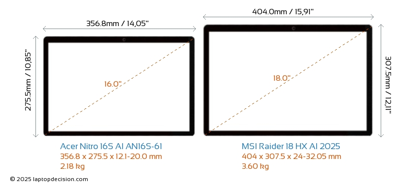 HDMIBoth Nitro 16S AI AN16S-61 and Raider 18 HX AI 2025 feature an HDMI port (1x HDMI 2.1) for connecting to external monitors.