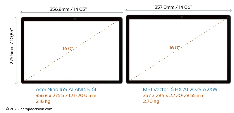 HDMIBoth Nitro 16S AI AN16S-61 and Vector 16 HX AI 2025 A2XW feature an HDMI port (1x HDMI 2.1) for connecting to external monitors.