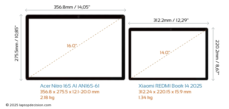 ThunderboltNeither Nitro 16S AI AN16S-61 nor REDMI Book 14 2025 has Thunderbolt port.