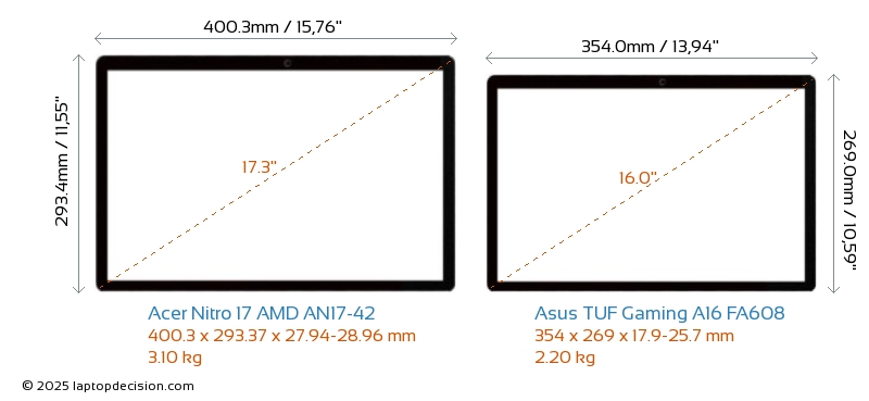 ThunderboltNeither Nitro 17 AMD AN17-42 nor TUF Gaming A16 FA608 has Thunderbolt port.