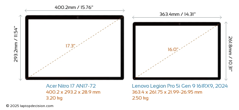 SD Card Reader Nitro 17 AN17-72 is equipped with an SD Card Reader for easy access to memory cards. Legion Pro 5i Gen 9 16IRX9, 2024 does not have an SD Card Reader.