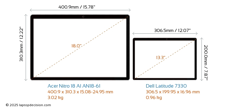 Audio JackBoth Nitro 18 AI AN18-61 and Latitude 7330 are equipped with a 3.5mm Audio Jack, providing seamless connection to headphones and speakers.
