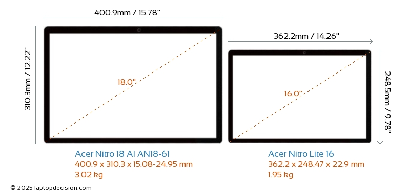 Wifi Nitro 18 AI AN18-61 features a more advanced Wi-Fi standard v6E, providing faster and more reliable wireless connections compared to Nitro Lite 16 (v6).
