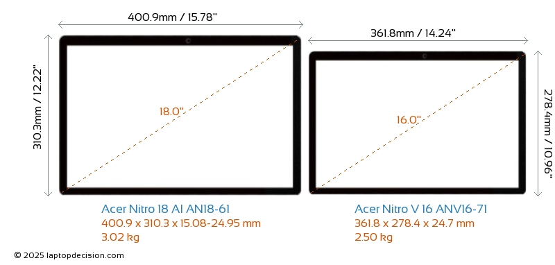 HDMIBoth Nitro 18 AI AN18-61 and Nitro V 16 ANV16-71 feature an HDMI port (1x HDMI 2.1) for connecting to external monitors.