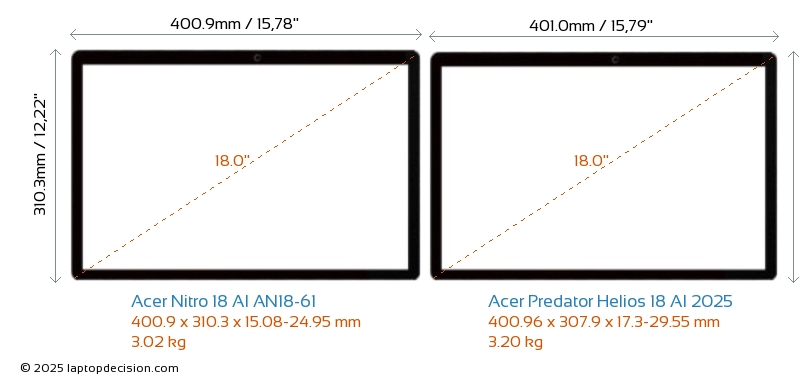 HDMIBoth Nitro 18 AI AN18-61 and Predator Helios 18 AI 2025 feature an HDMI port (1x HDMI 2.1) for connecting to external monitors.