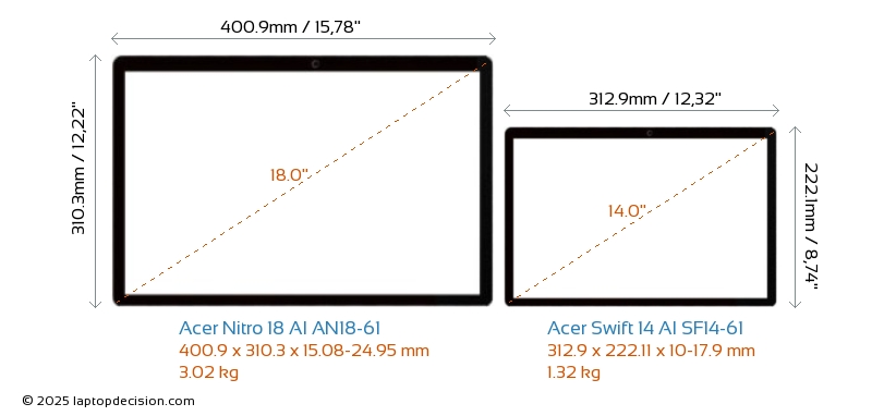 HDMIBoth Nitro 18 AI AN18-61 and Swift 14 AI SF14-61 feature an HDMI port (1x HDMI 2.1) for connecting to external monitors.
