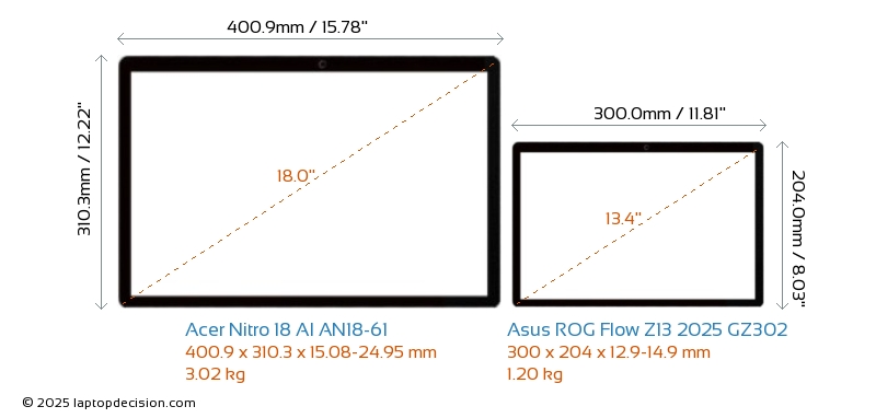 HDMIBoth Nitro 18 AI AN18-61 and ROG Flow Z13 2025 GZ302 feature an HDMI port (1x HDMI 2.1) for connecting to external monitors.