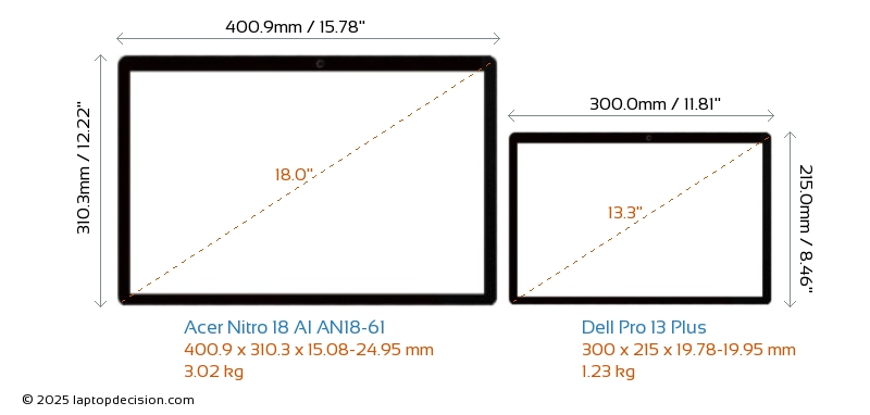 HDMIBoth Nitro 18 AI AN18-61 and Pro 13 Plus feature an HDMI port (1x HDMI 2.1) for connecting to external monitors.