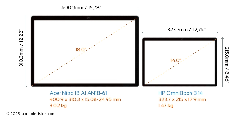 SD Card Reader Nitro 18 AI AN18-61 is equipped with an SD Card Reader for easy access to memory cards. OmniBook 3 14 does not have an SD Card Reader.