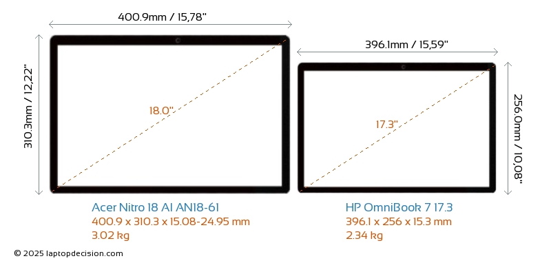 HDMIBoth Nitro 18 AI AN18-61 and OmniBook 7 17.3 feature an HDMI port (1x HDMI 2.1) for connecting to external monitors.