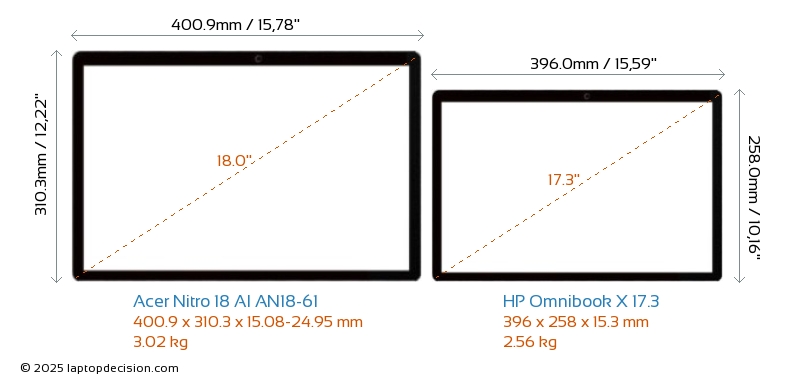 HDMIBoth Nitro 18 AI AN18-61 and Omnibook X 17.3 feature an HDMI port (1x HDMI 2.1) for connecting to external monitors.