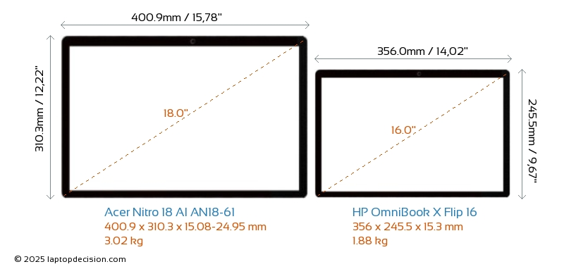 HDMIBoth Nitro 18 AI AN18-61 and OmniBook X Flip 16 feature an HDMI port (1x HDMI 2.1) for connecting to external monitors.