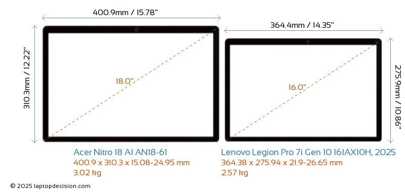 Wifi Legion Pro 7i Gen 10 16IAX10H, 2025 features a more advanced Wi-Fi standard v7, providing faster and more reliable wireless connections compared to Nitro 18 AI AN18-61 (v6E).