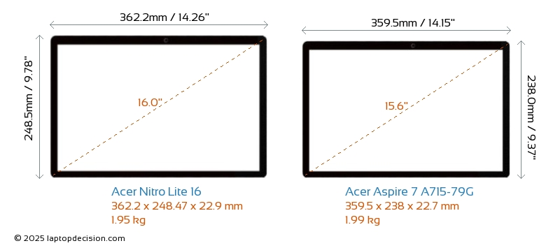 USBBoth Nitro Lite 16 and Aspire 7 A715-79G feature 2x USB 3.2 USB-A ports.Both Nitro Lite 16 and Aspire 7 A715-79G have USB Type-C ports. Nitro Lite 16 has 1x USB 4.0 USB Type-C ports, while Aspire 7 A715-79G has 2x USB 3.2 USB Type-C ports.