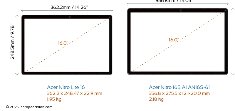 HDMIBoth Nitro Lite 16 and Nitro 16S AI AN16S-61 feature an HDMI port (1x HDMI 2.1) for connecting to external monitors.