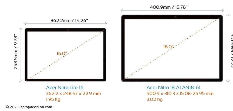 HDMIBoth Nitro Lite 16 and Nitro 18 AI AN18-61 feature an HDMI port (1x HDMI 2.1) for connecting to external monitors.