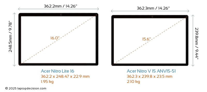 HDMIBoth Nitro Lite 16 and Nitro V 15 ANV15-51 feature an HDMI port (1x HDMI 2.1) for connecting to external monitors.