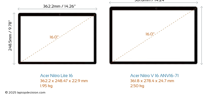 HDMIBoth Nitro Lite 16 and Nitro V 16 ANV16-71 feature an HDMI port (1x HDMI 2.1) for connecting to external monitors.