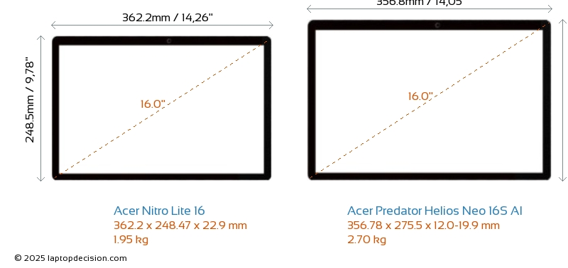 HDMIBoth Nitro Lite 16 and Predator Helios Neo 16S AI feature an HDMI port (1x HDMI 2.1) for connecting to external monitors.