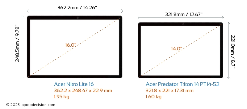 Wifi Predator Triton 14 PT14-52 features a more advanced Wi-Fi standard v7, providing faster and more reliable wireless connections compared to Nitro Lite 16 (v6).