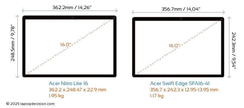 HDMIBoth Nitro Lite 16 and Swift Edge SFA16-41 feature an HDMI port (1x HDMI 2.1) for connecting to external monitors.