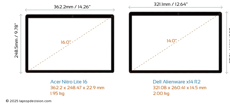 HDMIBoth Nitro Lite 16 and Alienware x14 R2 feature an HDMI port (1x HDMI 2.1) for connecting to external monitors.
