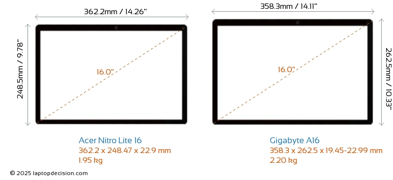 Wifi A16 features a more advanced Wi-Fi standard v6E, providing faster and more reliable wireless connections compared to Nitro Lite 16 (v6).