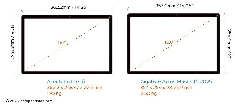 HDMIBoth Nitro Lite 16 and Aorus Master 16 2025 feature an HDMI port (1x HDMI 2.1) for connecting to external monitors.