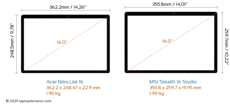 HDMIBoth Nitro Lite 16 and Stealth 16 Studio feature an HDMI port (1x HDMI 2.1) for connecting to external monitors.