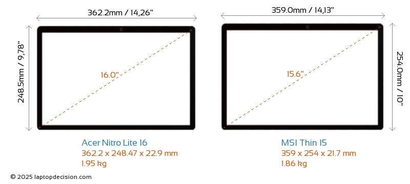 Wifi Thin 15 features a more advanced Wi-Fi standard v6E, providing faster and more reliable wireless connections compared to Nitro Lite 16 (v6).