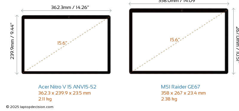 SD Card ReaderRaider GE67 is equipped with an SD Card Reader for easy access to memory cards. Nitro V 15 ANV15-52 does not have an SD Card Reader.