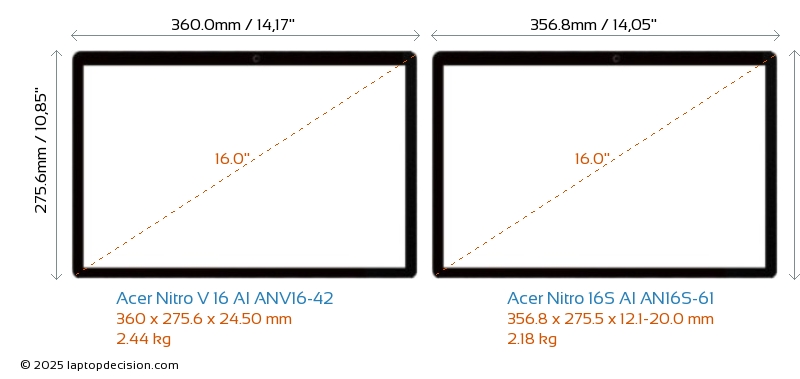 HDMIBoth Nitro V 16 AI ANV16-42 and Nitro 16S AI AN16S-61 feature an HDMI port (1x HDMI 2.1) for connecting to external monitors.