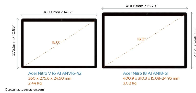 HDMIBoth Nitro V 16 AI ANV16-42 and Nitro 18 AI AN18-61 feature an HDMI port (1x HDMI 2.1) for connecting to external monitors.