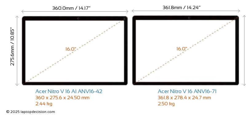 Wifi Nitro V 16 AI ANV16-42 features a more advanced Wi-Fi standard v6E, providing faster and more reliable wireless connections compared to Nitro V 16 ANV16-71 (v6).