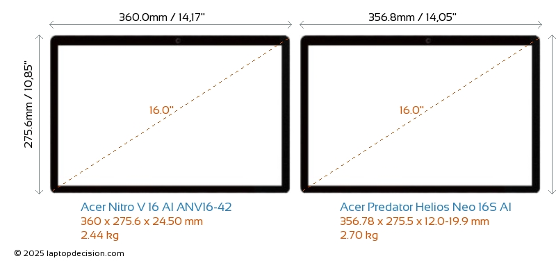 HDMIBoth Nitro V 16 AI ANV16-42 and Predator Helios Neo 16S AI feature an HDMI port (1x HDMI 2.1) for connecting to external monitors.