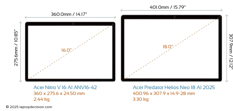 HDMIBoth Nitro V 16 AI ANV16-42 and Predator Helios Neo 18 AI 2025 feature an HDMI port (1x HDMI 2.1) for connecting to external monitors.