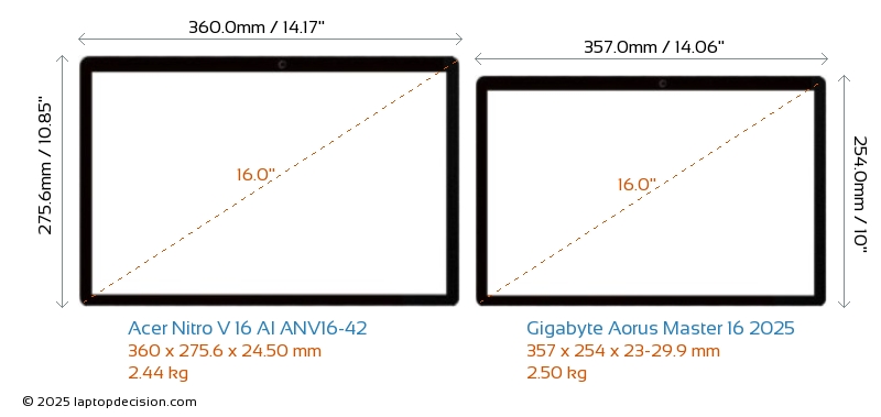 Wifi Aorus Master 16 2025 features a more advanced Wi-Fi standard v7, providing faster and more reliable wireless connections compared to Nitro V 16 AI ANV16-42 (v6E).