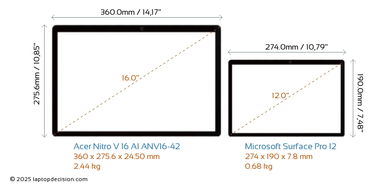 Audio Jack Nitro V 16 AI ANV16-42 is equipped with a 3.5mm Audio Jack, allowing seamless connection to headphones and speakers. Surface Pro 12 does not have a 3.5mm Audio Jack.