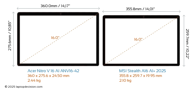 SD Card Reader Nitro V 16 AI ANV16-42 is equipped with an SD Card Reader for easy access to memory cards. Stealth A16 AI+ 2025 does not have an SD Card Reader.