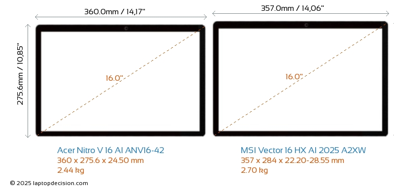 Thunderbolt Vector 16 HX AI 2025 A2XW is equipped with Thunderbolt 5 port. Nitro V 16 AI ANV16-42 does not have Thunderbolt port.