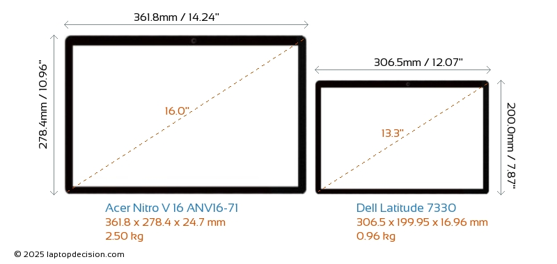 Audio JackBoth Nitro V 16 ANV16-71 and Latitude 7330 are equipped with a 3.5mm Audio Jack, providing seamless connection to headphones and speakers.