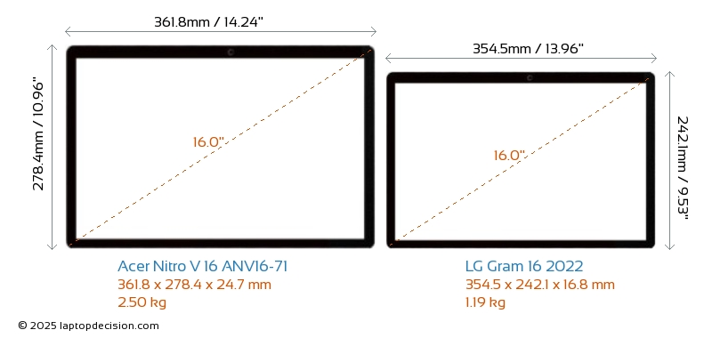 SD Card ReaderGram 16 2022 is equipped with an SD Card Reader for easy access to memory cards. Nitro V 16 ANV16-71 does not have an SD Card Reader.